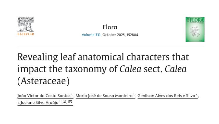 O professor e botânico Genilson Alves dos Reis e Silva, do Campus Valença, é coautor de um artigo científico recentemente publicado na revista Flora (Elsevier). O trabalho "Revealing leaf anatomical characters that impact the taxonomy of Calea sect. Calea (Asteraceae)", é resultado de uma parceria com pesquisadores da Universidade Estadual do Piauí (UESPI) e da Universidade Federal de Viçosa (UFV).